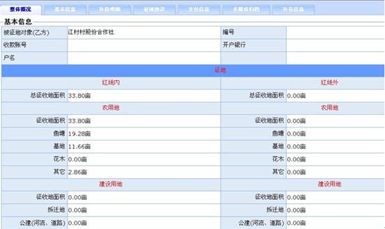 征地信息管理是以村居为单位进行胡信息管理,主要对征地拆迁相关的整体情况、基本信息、费用补偿、征地协议、支付信息和其他资料进行管理。